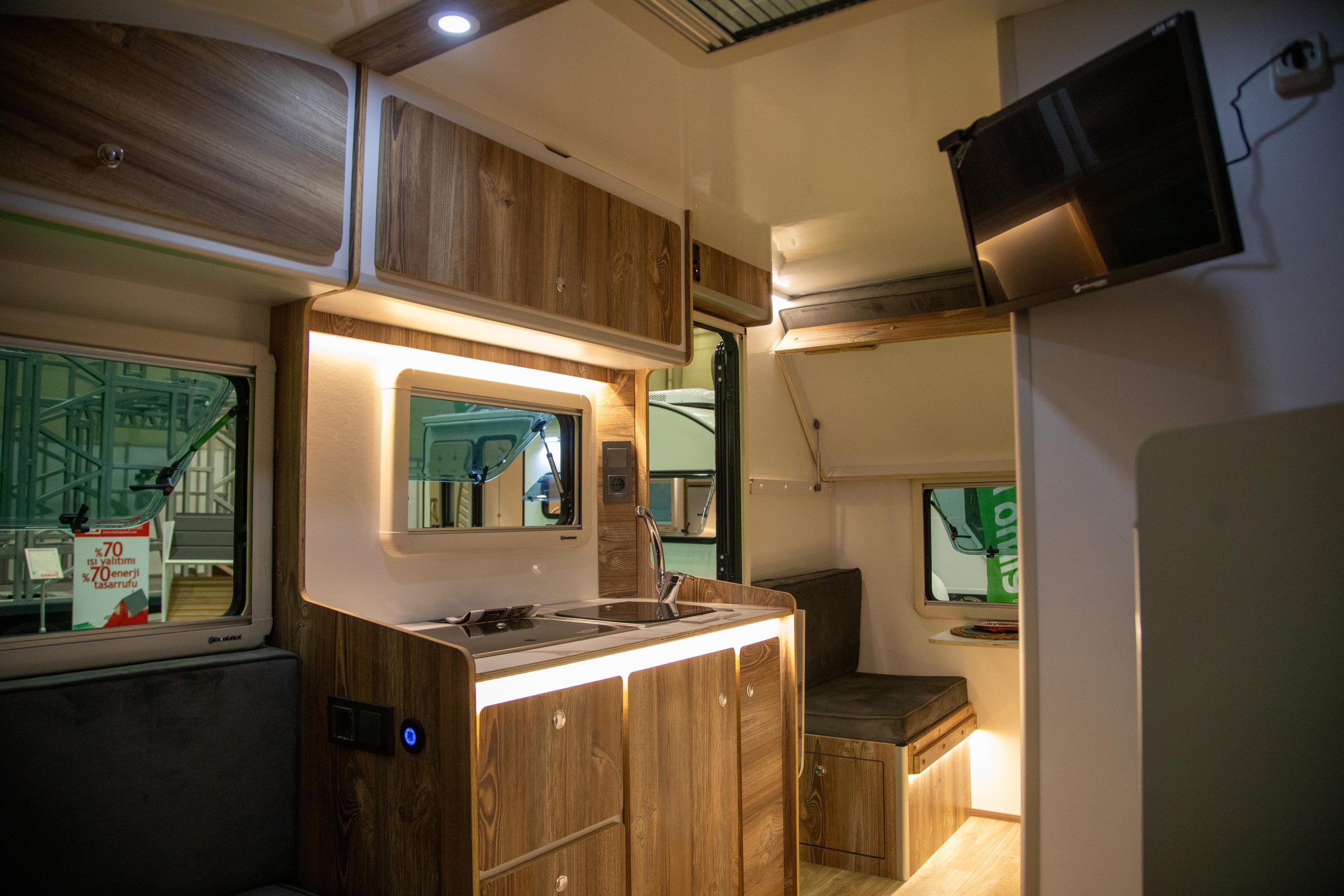 Karavanımız full donanıma sahip olup tüm camlar behrimi sineklik ve karartma perdeli