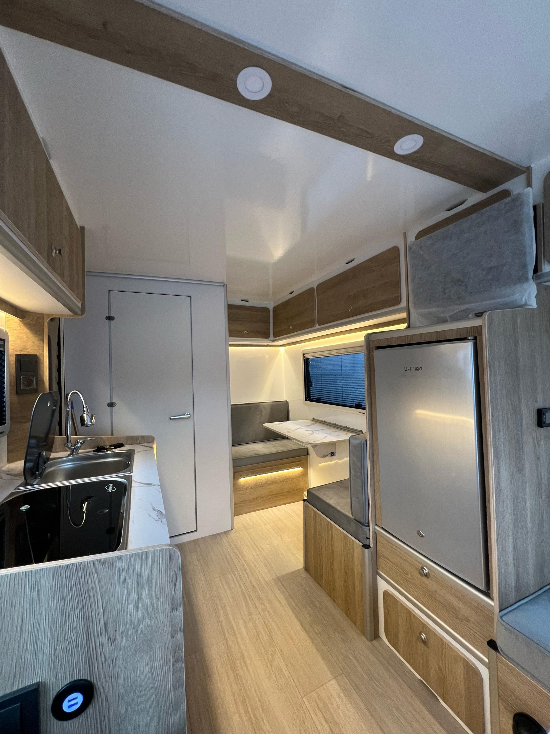 Dış cephe ve yalıtım duvarlarımız tamamı vakum tezgahında panel haline getirilip karavana monte edilmiştir kesinlikle potluk yada atma yapmaz